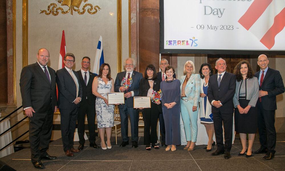Der Botschafter Israels, S.E. Mordechai Denis Rodgold und Frau Céline Rodgold luden gemeinsam mit dem Botschafter und Ständigen Vertreter Israels bei der IAEO und CTBTO PrepCom, S.E. David Nusbaum und Frau Dr. Lidia Lika Nusbaum zu einem großen Empfang anlässlich des 75. Unabhängigkeitstages des Staates Israels und zur Verleihung des Israel Friendship Awards 2023 in das Palais Liechtenstein ein.