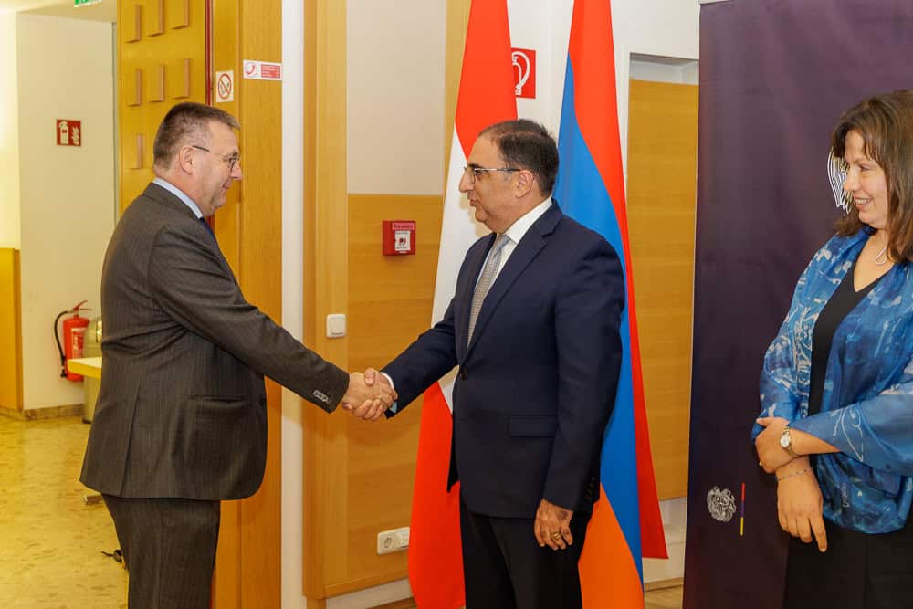Armenia: 34th Anniversary of Independence Photos: Diplomatic SOCIETY/Pobaschnig The Ambassador of Armenia to Austria, H.E. Andranik Hovhannisyan, invited to a reception at Diplomatic Academy of Vienna on the occasion of the 34th Anniversary of Independence. Previous Article “I attach special importance to make the voice of Africa heard within the Board” Next Article Polen: Konzert "Junge polnische Talente - von Barock bis Pop"