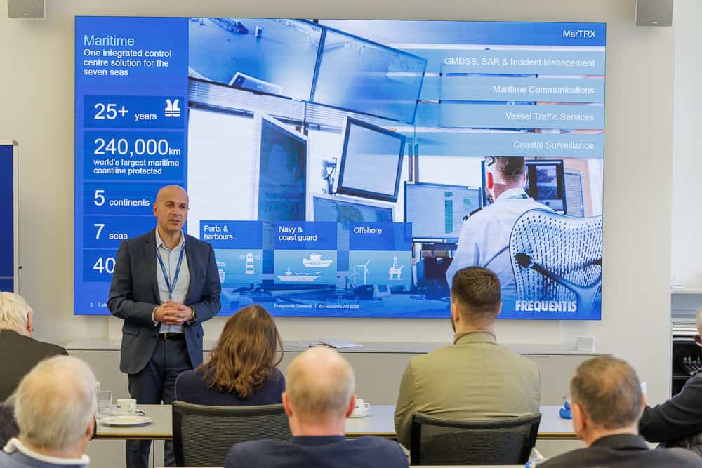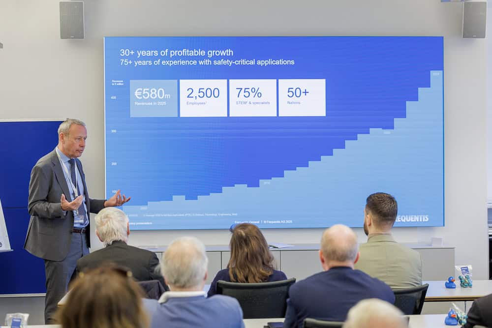The Board of the Club der Handelsräte invited to a visit of Frequentis AG, a global supplier of communication and information systems for control centres with safety-critical tasks. After the welcome words by Sales Director Christoph Götze, New Business Develop Manager Nikolaus Holzinger and Secretary-General of the CdH Georg Krauchenberg, the presentation of FREQUENTIS AG by Mr. Götze and Mr. Holzinger started. Then, the participants were invited to a company tour and a Q&A session as well as individual discussions over refreshments and snacks.