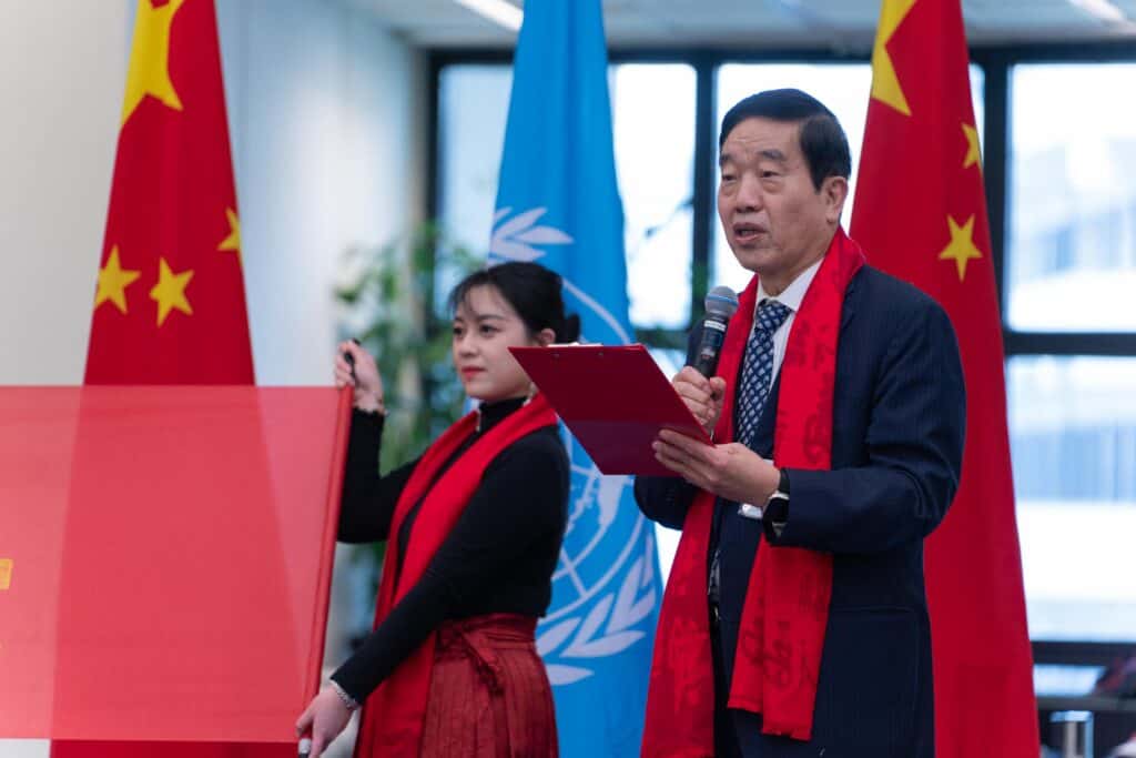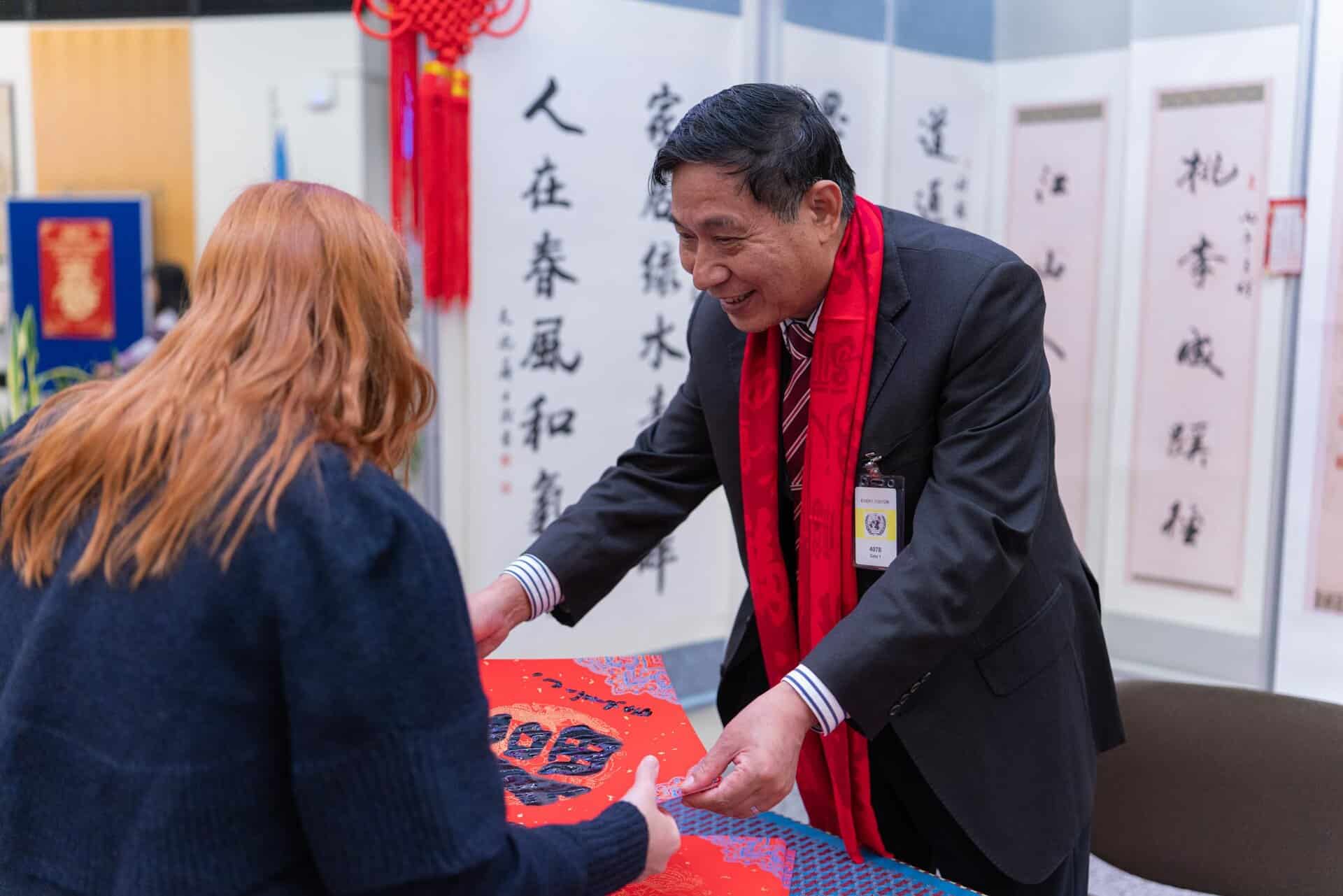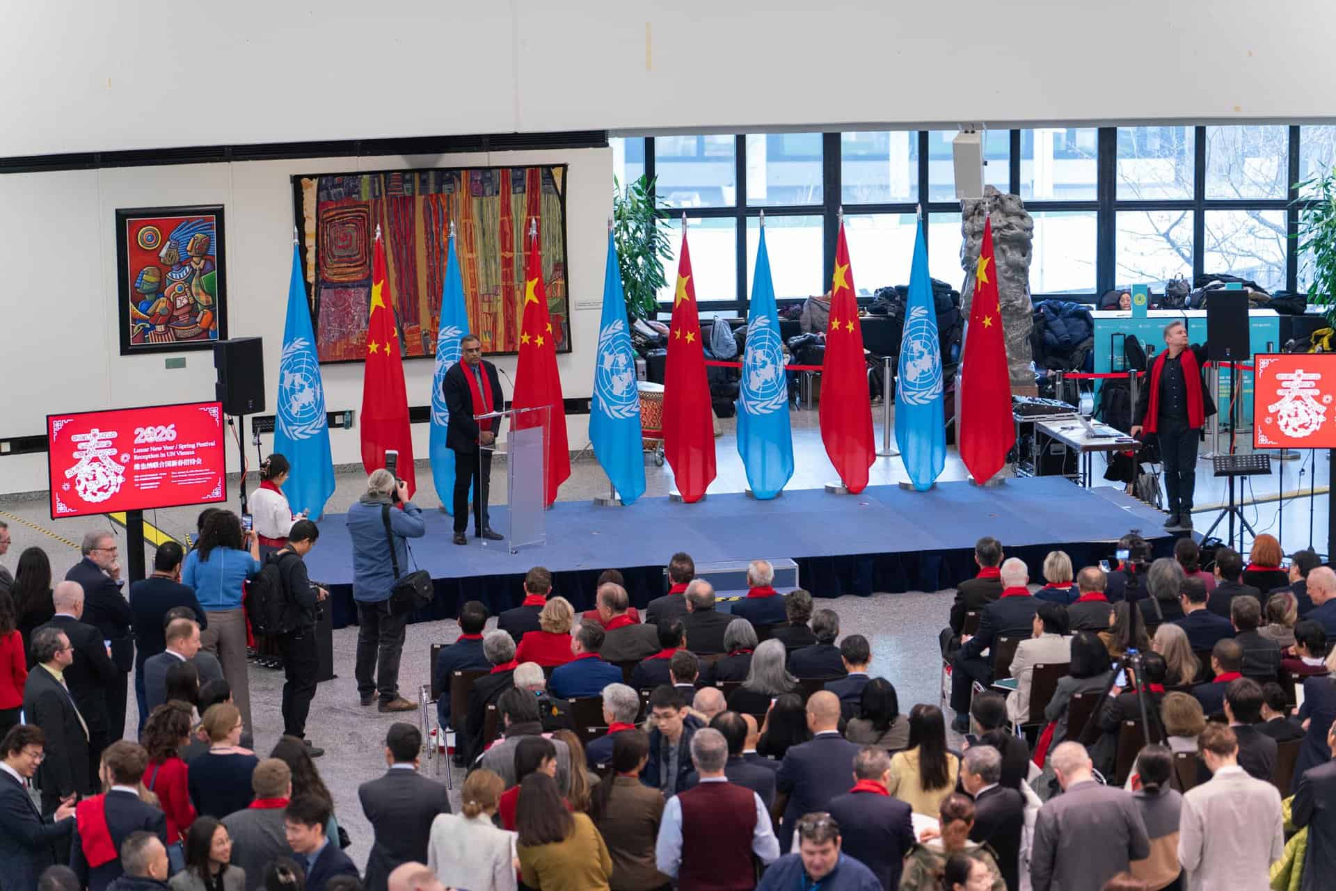 On the occasion of the Lunar New Year/Spring Festival, the Permanent Representative of China to the United Nations and other International Organizations in Vienna, H.E. Ambassador LI Song and Ms. WANG Xiaolin, invited to a reception in the Rotunda of Vienna International Centre.