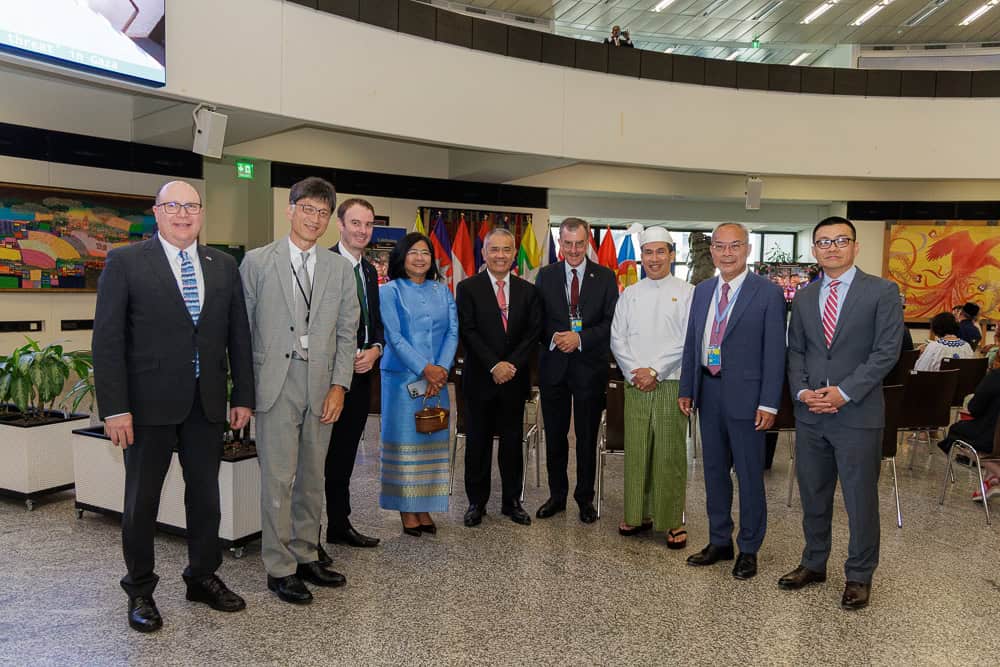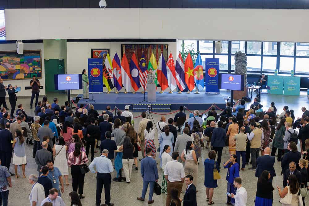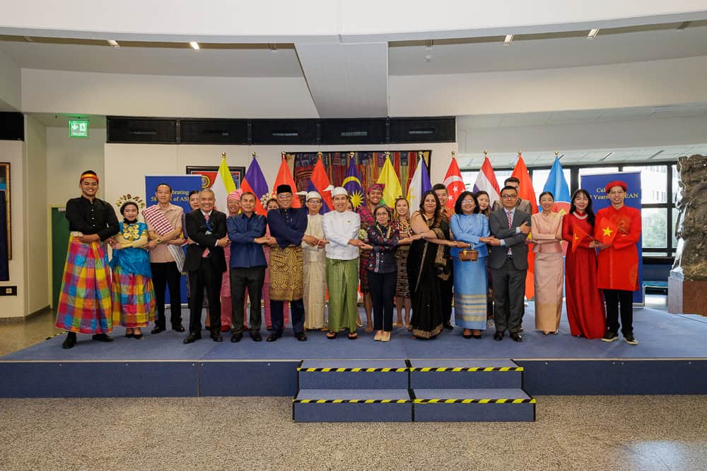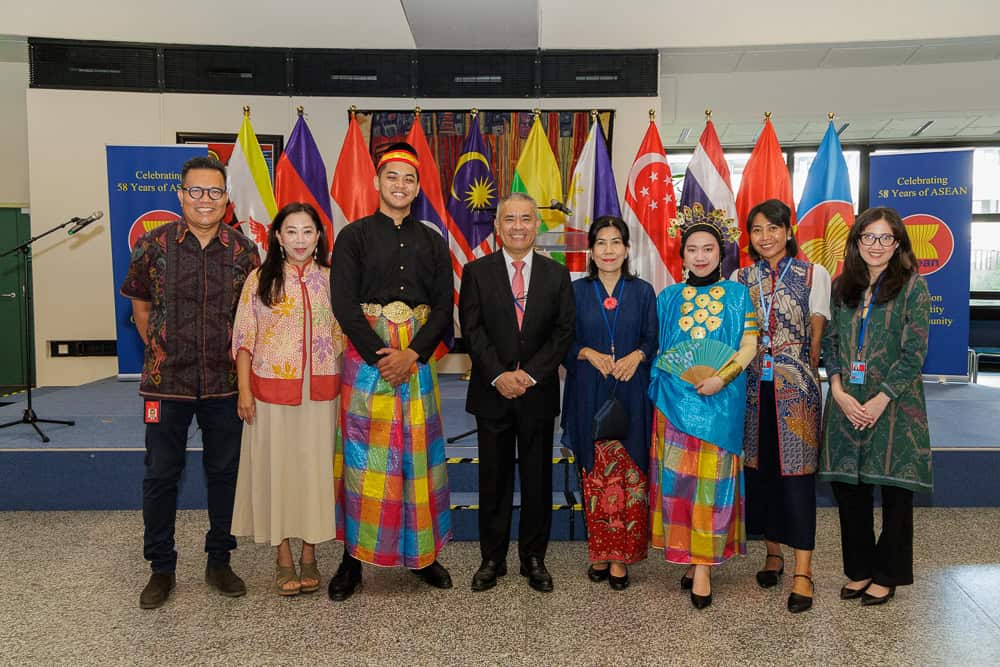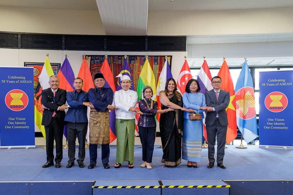 The Myanmar Embassy and Permanent Mission, in its capacity as Chair of the ASEAN Vienna Committee, invited to a Commemorative Event of the 58th Anniversary of ASEAN Day together with the Heads of Embassies and Permanent Missions of the ASEAN Member States in Vienna, H.E. Damos Dumoli Agusman (Indonesia), H.E. Khampheng Douangthongla (Lao PDR), H.E. Ikram Bin Mohammad Ibrahim (Malaysia), H.E. Min Thein (Myanmar), H.E. Evangelina Lourdes A. Bernas (Philippines), Deputy Permanent Representative Jophie Tang (Singapore), H.E. Pattarat Hongtong (Thailand) and H.E. Vu Le Thai Hoang (Vietnam). At Rotunda of Vienna International Center, a national costume show and traditional cuisine of the member states provided a glimpse into the diverse cultural landscape of the ASEAN countries.