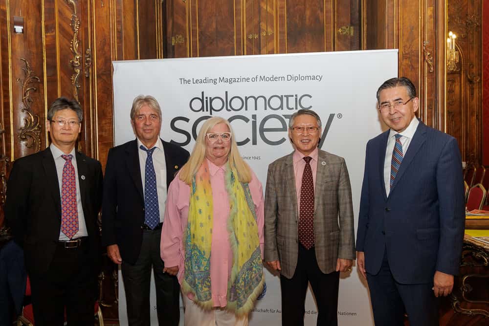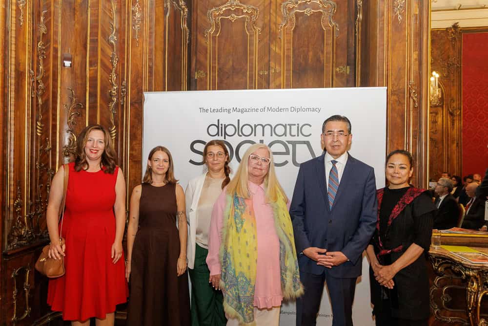 KR Prof. Mag. Gertrud Tauchhammer, honorary Ambassador of Tourism of Uzbekistan and owner of Diplomatic SOCIETY Magazine, together with H.E. Bakhtiyor Ibragimov, Ambassador of Uzbekistan hosted an event under the motto “Experience Uzbekistan’s heritage, culture and delicacies” at the beautiful historic Palais Schönborn-Batthyány . In her speech, Ms. Tauchhammer – introduced by the evening’s moderator Dr. Rudolf Thaler, Former Austrian Trade Delegate – spoke about her personal impressions during her travels to Uzbekistan, where she was particularly impressed by the hospitality of the people. Then, Ambassador Ibragimov addressed the guests – among them Vladimir Norov, former Minister of Foreign Affairs of Uzbekistan and former Secretary-General of the Shanghai Cooperation Organisation and Orzigul Kozikhonova, Chair of the Senate Committee of the Oliy Majlis of Uzbekistan – giving an interesting insight into the impressive growth of the tourism sector in Uzbekistan. His speech was followed by words by the Austrian Ambassador to Uzbekistan, H.E. Matthias Radosztics, who pointed out the lively exchange between Uzbekistan and Austria, manifesting in many visits and meetings between high-level representatives of both countries. Last but not least, Kalya Khine from LassUnsReisen introduced the many guests to the wonders of Uzbekistan with a captivating presentation. After the official part, the Embassy offered traditional samsa and plow as well as drinks and the invitees had the chance to discuss their travel plans to Uzbekistan.