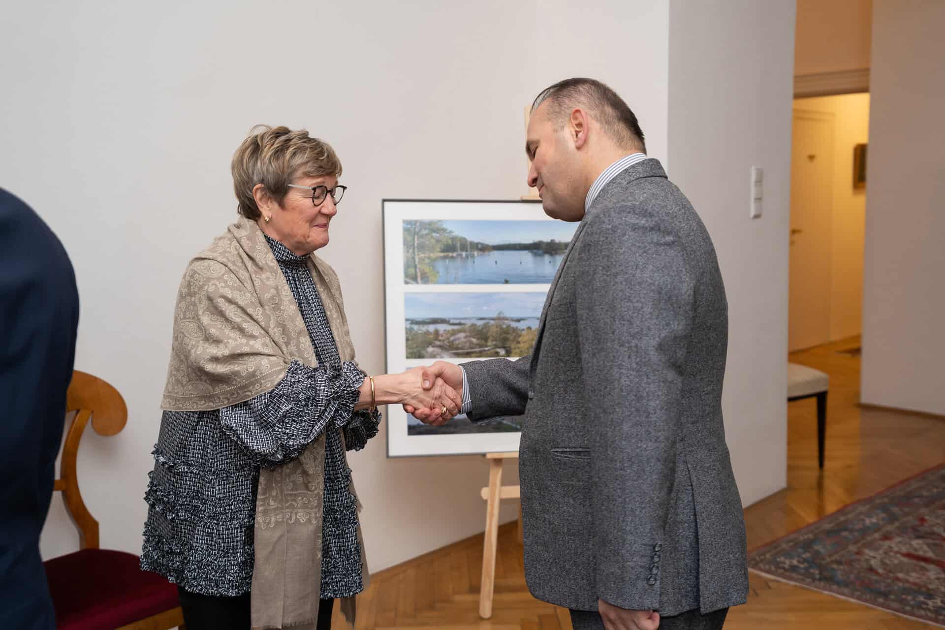On the occasion of the Independence Day of the Republic of Finland, the Ambassador of Finland to Austria and Permanent Representative of Finland to the International Organizations in Vienna, H.E. Nina Vaskunlahti, the Permanent Representative of Finland to the OSCE and Chairperson of the Permanent Council, H.E. Vesa Häkkinen, and the Defence Attaché and Military Advisor, Colonel Tero Savonen, invited to a reception at the Residence of the Ambassador.