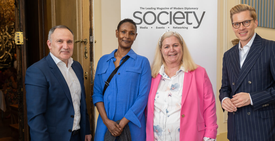 Diplomatic SOCIETY owner KR Prof. Mag. Gertrud Tauchhammer invited to the first Salon Diplomatique – following the tradition of the Vienna Congress Salon – at the beautiful Salon Schönborn-Batthyány with star guest Waris Dirie, famous activist, former UN Special Ambassador against FGM and founder of the Desert Flower Foundation. The international guests came together at the historic Palais to exchange ideas and views, to network and to get the chance to meet with Ms. Dirie, who, at the time of the event, had her first exhibition of paintings at Bank Austria Kunstforum.