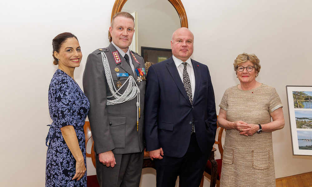 Flag Day of the Finnish Defence Photos: Diplomatic SOCIETY/Pobaschnig The Ambassador of Finland to Austria, H.E. Nina Vaskunlahti and Dr. Andreas Herdina, as well as the Defence Attaché and Military Advisor Colonel Tero Savonen and Ms. Sylvia Savonen invited to a reception at the Residence of the Ambassador. Previous Article Italien: Nationalfeiertag Next Article WKÖ Exporttag 25: Globale Umbrüche und chancenreiche Märkte im Fokus