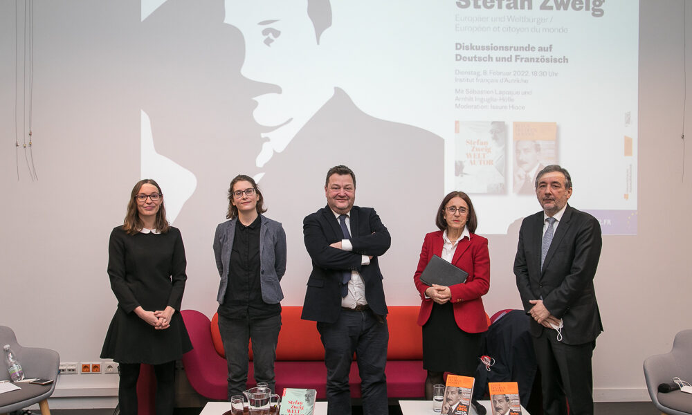 Der Direktor des französischen Kulturinstituts, Philippe Sutter, in Zusammenarbeit mit La Revue des Deux Mondes und dem Literaturmuseum der Österreichischen Nationalbibliothek, lud zu einer Diskussion mit dem Titel „Zweig, Europäer und Weltbürger“ in das Institut français d’Autriche ein. Am Podium diskutierten Sébastien Lapaque, Schriftsteller und Kritiker für den Figaro littéraire und Arnhilt Inguglia-Höfle, stellvertretende Direktorin des Literaturmuseums und Ko-Kuratorin der aktuellen Ausstellung „Stefan Zweig. Weltautor“. Auch der französische Botschafter, S.E. Gilles Pécout folgte dem spannenden Gedankenaustausch.