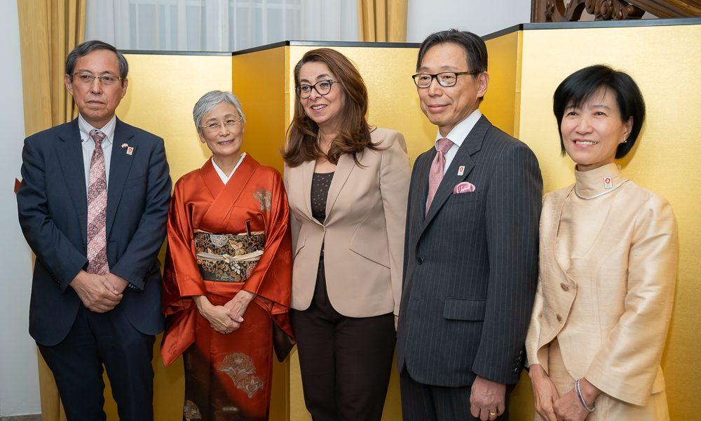 To celebrate the birthday of His Majesty Emperor Naruhito, H.E. Mizuuchi Ryuta and spouse Akemi, as well as the permanent representative to the international organizations in Vienna, Ambassador Hikihara Takeshi and spouse Hammi invited to a reception at the residence of the Japanese Embassy.