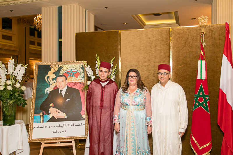 On the occasion of the twentieth Anniversary of the Enthronement of His Majesty Mohammed VI, King of Morocco, the Ambassador of His Majesty the King of Morocco to Austria, H.E. Mr. Azzeddine Farhane and Mrs. Amina Idrissi Belkasmi invited to a reception at the Grand Hotel Wien.