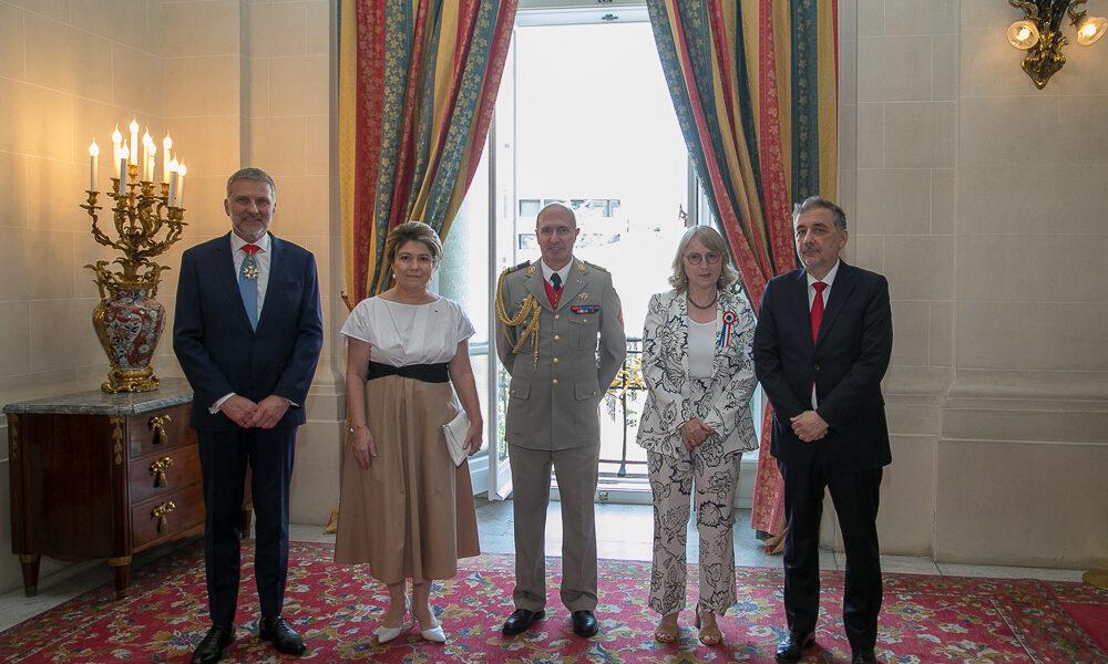 On the occasion of the National Day of France, Ambassador of France to Austria, H.E. Gilles Pécout and Ms. Anne-Christine Pécout-Kuri, Permanent Representative of France to the OSCE, Ambassador Christine Fages and Mr. Bruno Caïtucoli and Permanent Representative to the UN and other International Organizations in Vienna, Ambassador Delphine Hournau-Pouëzat and Mr. Yann Pouëzat invited to a reception at the beautiful Embassy of France.