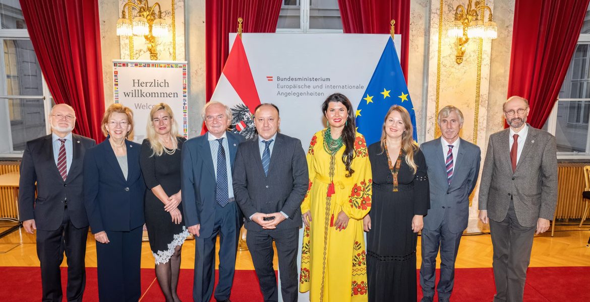 Der alljährlich vom Dachverband aller österreichisch-ausländischen Gesellschaften – PaN vergebene Preis des Bundesministeriums für europäische und internationale Angelegenheiten ging 2022 an die Österreichisch-Ukrainische Gesellschaft. Der Festakt fand am 6. Oktober 2022 im Alois Mock-Saal des Außenministeriums statt. Botschafterin Dr. Teresa Indjein, Leiterin der Sektion für internationale Kulturbeziehungen, hob die österreichisch-ukrainische Freundschaft hervor, der derzeit eine besonders große Bedeutung zukommt. Der ukrainische Gesandte Vadym Kovalevskyi bedankte sich für die Kooperation und das Engagement der Österreichisch-Ukrainischen Gesellschaft und hob den Zusammenhalt hervor, der gerade in solch schwierigen Zeiten von großer Bedeutung ist. Univ.-Prof. Dr. Hermann Mückler, Präsident des Dachverbandes-PaN, ging in seiner Laudatio auf die Bedeutung der Geschichte ein und wie sehr die Ereignisse der letzten Monate die Welt bewegt und verändert haben. In seiner Dankesrede führte Univ.-Prof. Mag. Dr. Alois Woldan, Präsident der Österreichisch-Ukrainischen Gesellschaft, aus, wie wichtig das Netzwerk der Gesellschaft im letzten Halbjahr war. Die beiden bekannten ukrainischen Künstlerinnen Zoryana Kushpler und Iryna Nikolayeva, beide aus Lemberg/Lwiw stammend, besorgten den musikalischen Rahmen. Im Anschluss lud Botschafter Mag. Martin Pammer, Leiter der Abteilung für multilaterale Auslandskultur, der durch den Abend geführt hatte, zu einem Empfang.