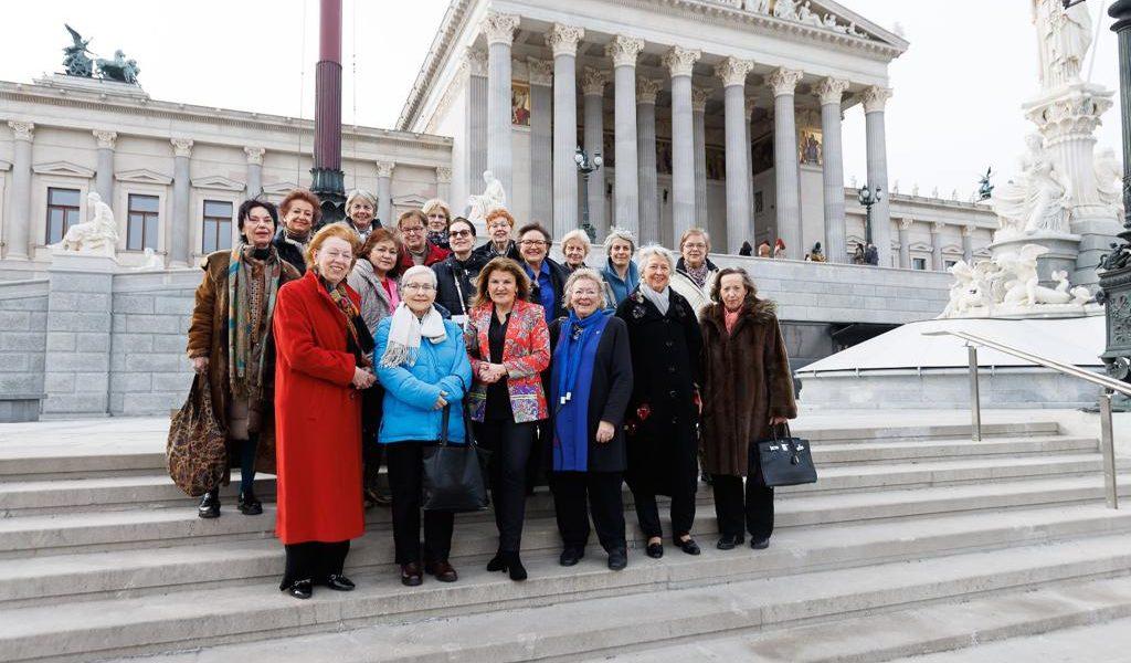 Die Vizedirektorin des Bundesrates Senatorin Dr. Alice Alsch-Harant begrüßte die Damenriege vor dem Denkmal der Pallas Athene und gab einen Ausblick auf die zu erwartende Führung durch das Parlamentsgebäude.