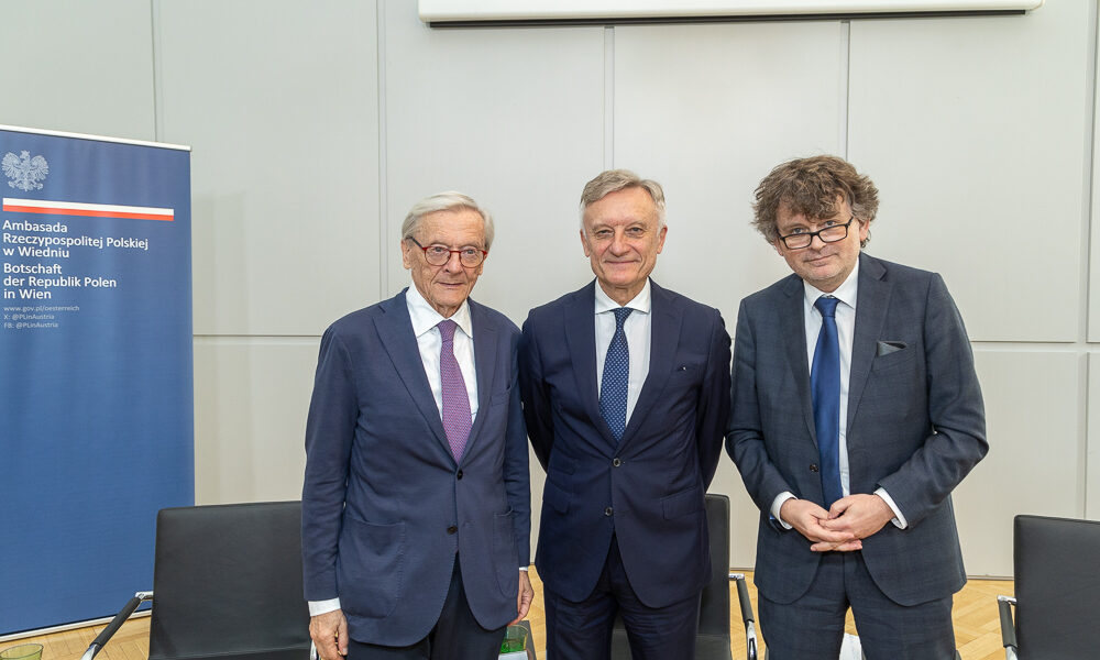 Polens Chargé d’Affaires Janusz Styczek lud zur Podiumsdiskussion “Polnische Europapolitik 20 Jahre nach dem EU-Beitritt – Prioritäten der neuen polnischen Regierung” mit Bundeskanzler a.D. Dr. Wolfgang Schüssel und Unterstaatssekretär Dr. Marek Prawda in den Presseclub Concordia. Moderiert wurde die Veranstaltung von Standard Redakteur Mag. Gerald Schubert.