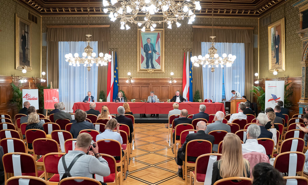 Die Botschafterin der Republik Polen, I.E. Jolanta Róża Kozłowska, der Bürgermeister und Landeshauptmann von Wien, Dr. Michael Ludwig und der erste Präsident des Wiener Landtages, Ernst Woller, luden zu einer Podiumsdiskussion in den Stadtsenatssitzungssaal des Rathauses ein. Landtagspräsident Ernst Woller, Vizekanzler a.D. Dr. Erhard Busek, Redakteur Kurt Seinitz und Botschafterin I.E. Jolanta Róża Kozłowska diskutierten über „Das Vermächtnis der Solidarność und die aktuellen Herausforderungen Europas während des Vorsitzes Polens in der Visegrád-Gruppe“. Redakteur Otmar Lahodynsky führte als Moderator durch den Abend.