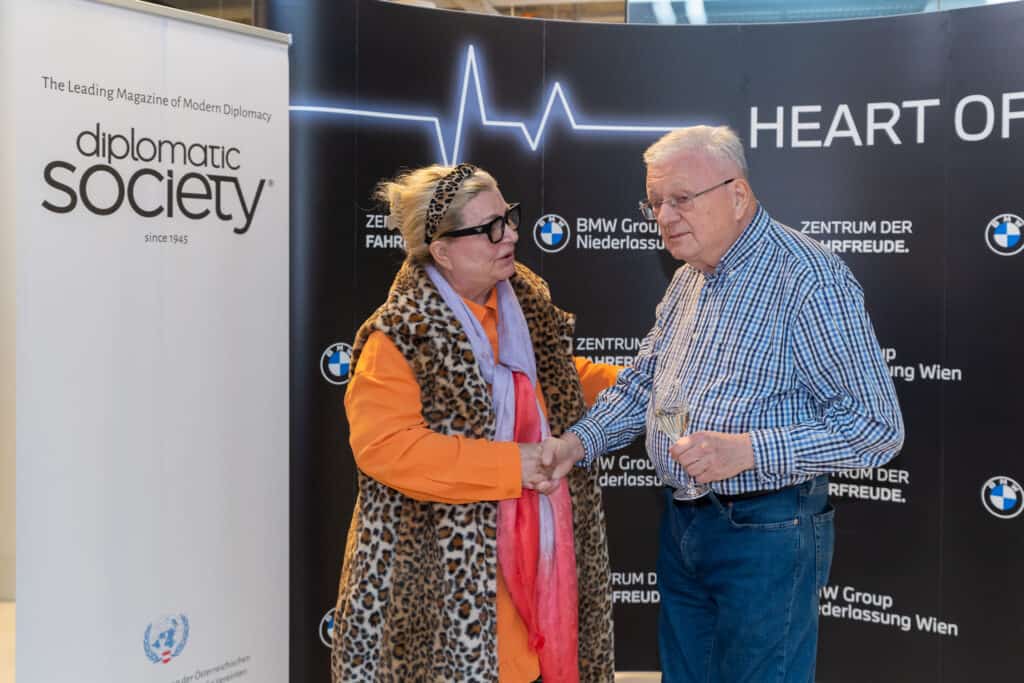 Mag. Gertrud Tauchhammer, together with BMW Group Niederlassung Wien General Manager Dr. Josef Reiter invited to the re-opening of BMW Group Niederlassung Wien Heiligenstadt. The international guests had the chance to marvel at the latest BMW models displayed in the showroom as well as taking a peek at the special edition of Mini Cooper, designed by the fashion designer Elie Saab and the presentation of the limited edition BMW Skytop 1/50.