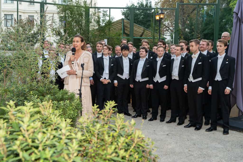 Die Botschafterin Schwedens, I.E. Annika Ben David, lud zu einem Konzert mit dem renommierten schwedischen Studentenchor Lunds Studentsangare in den Garten der Botschaft von Schweden ein. Im Anschluss an das Konzert hatten die Gäste im Rahmen eines Empfangs die Gelegenheit, sich mit schwedischen und österreichischen Künstler:innen, Kulturschaffenden und Musikliebenden auszutauschen.