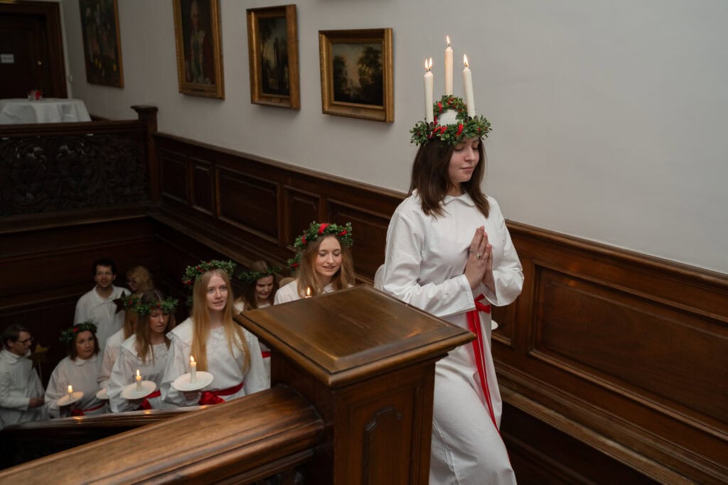 St. Lucia is a Swedish tradition that brings light and hope in the darkness of winter. Celebrated in homes, schools and workplaces all over Sweden, with candle-lit processions and choral music, Lucia stands as a symbol of peace, resilience ad the promise of renewal. a timeless reminder of light prevailing over darkness. (Text: Embassy of Sweden)