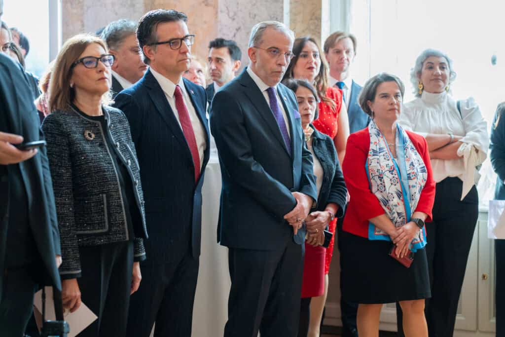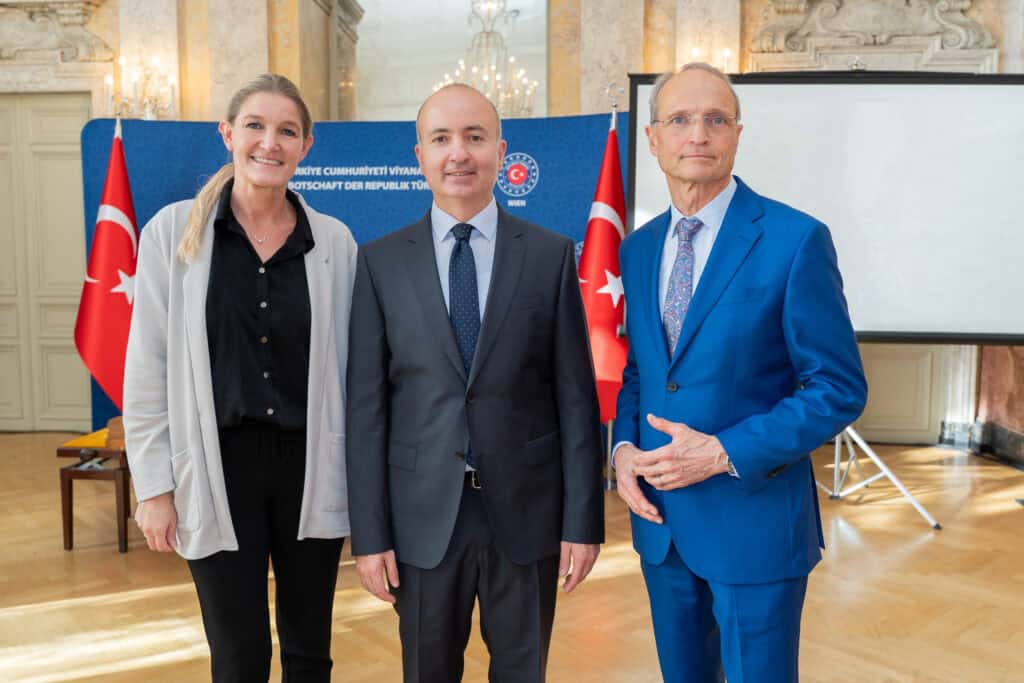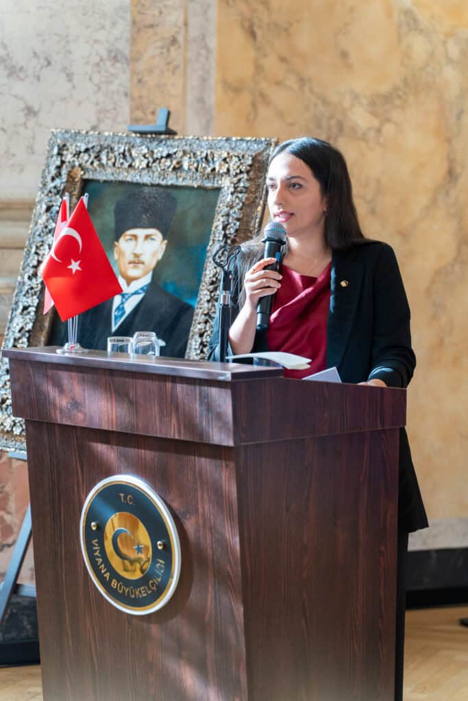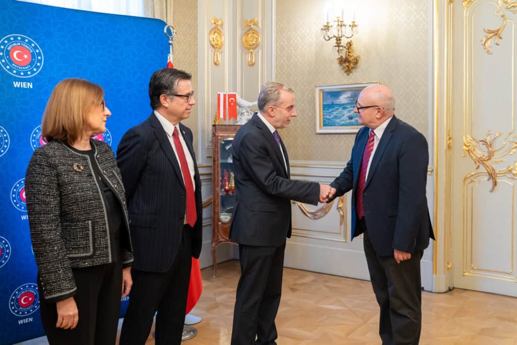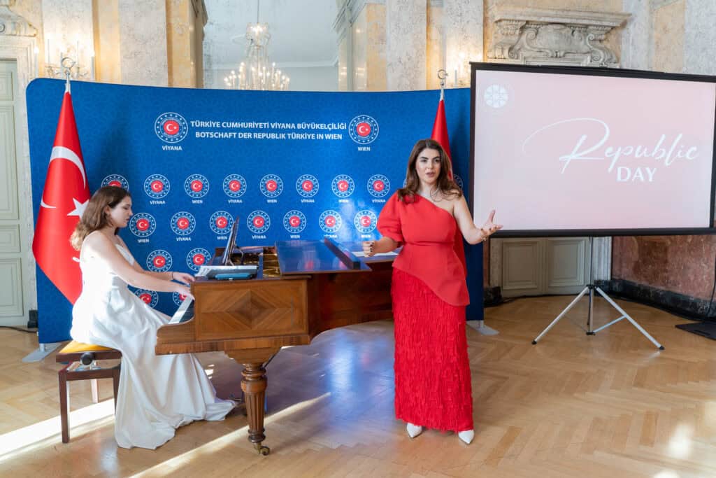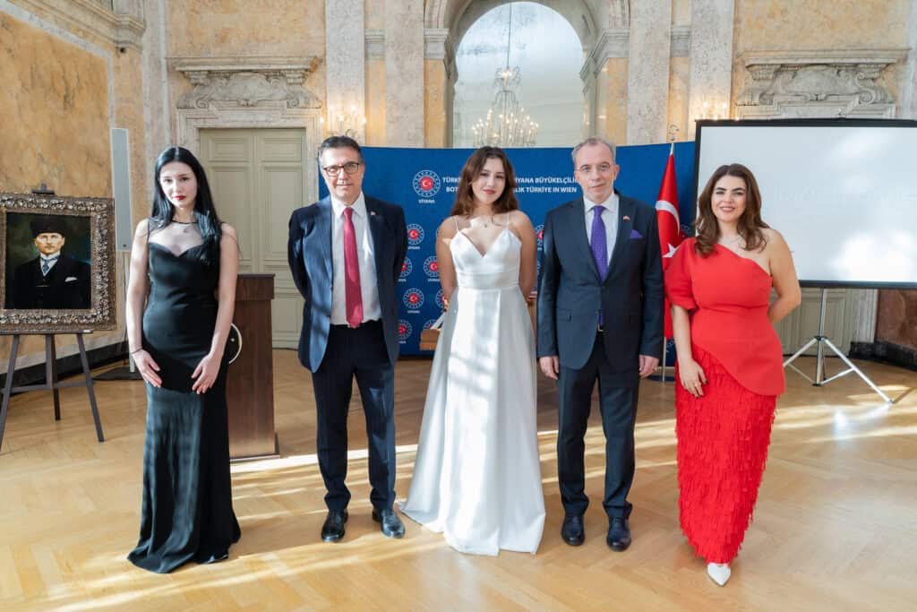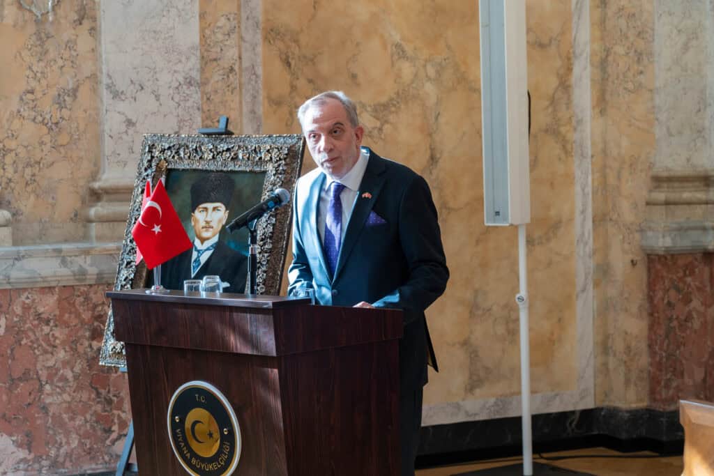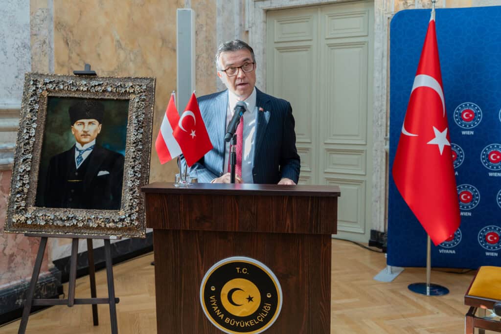 On the occasion of the 102th Anniversary of the Proclamation of the Republic of Türkiye, H.E. Gürsel Dönmez, Ambassador of the Republic of Türkiye, Levent Eler Ambassador Permanent Representative of the Republic of Türkiye to the UN to Austria and Zeynep Kızıltan and Ambassador Permanent Representative of the Republic of Türkiye to the OSCE had the pleasure to invite to a reception at the Embassy of Türkiye.