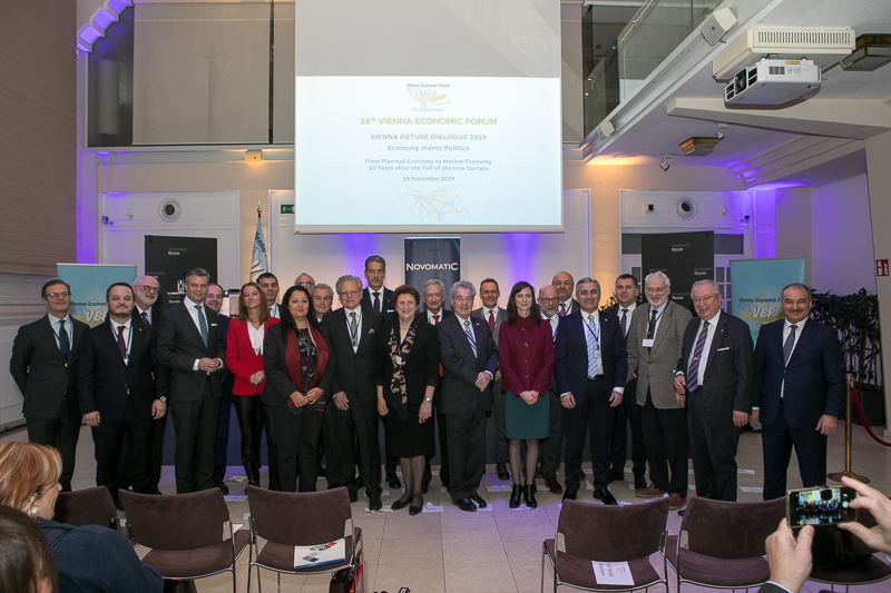 The Vienna Economic Forum invited to a plenary session within the framework of the 16th Vienna Future Dialogue under the motto „Economy meets Politics – On the road to the market economy – 30 years after the fall of the Iron Curtain“ at the Novomatic Forum. Amb. Dr. Elena Kirtcheva, Secretary General and Member of the Board of Vienna Economic Forum, Mag. Harald Neumann, CEO of Novomatic AG, Vice-President of Vienna Economic Forum and Honorary Consule of Romania, Tatjana Sterjova, PhD, Director of Brand Association at Regional Chamber of Economy of North Macedonia and DI Dr. Günther Rabensteiner, President of Vienna Economic Forum and Representative of Verbund AG opened the session, the impulse statement came from former Austrian President Dr. Heinz Fischer. Dr. Sonja Sagmeister, Author and Journalist of the ORF, moderated the talk, which was followed by a podium discussion with participants from the international political and economic field. Amb. Victor Jackovich, President of Jackovich International USA and Member of the Board of Vienna Economic Forum took over the moderation and also led through the Annual Award Ceremony of Vienna Economic Forum.