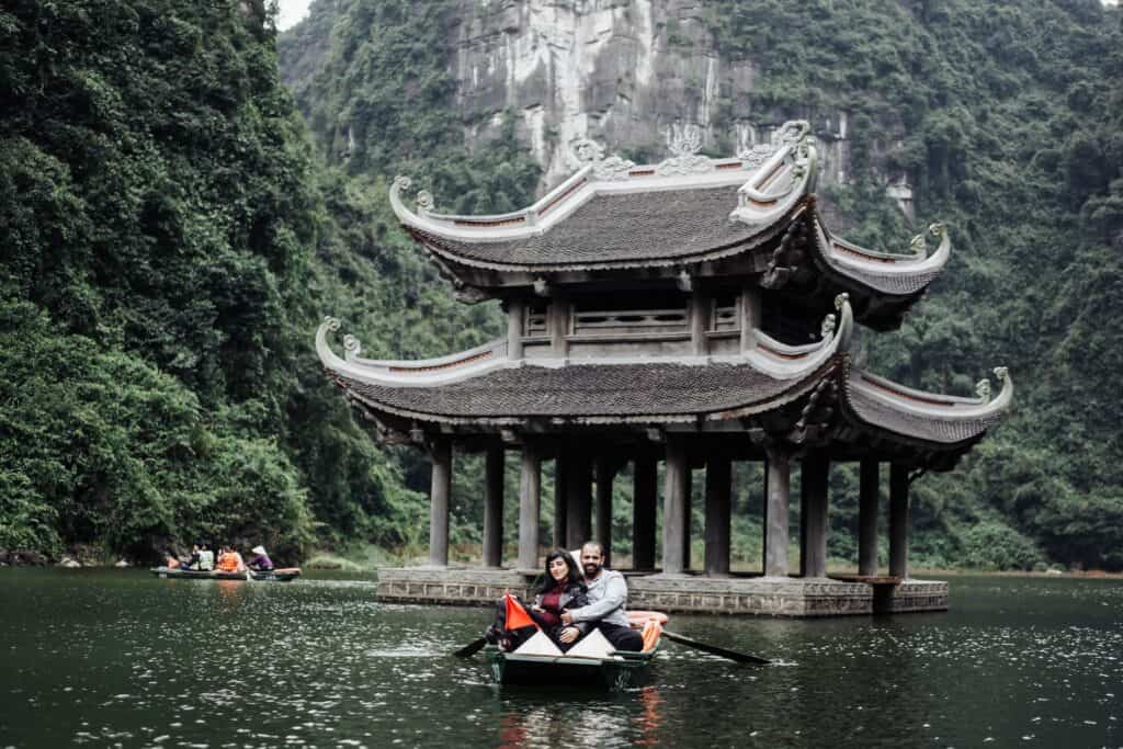 8 In Ninh Binh – a UNESCO-protected site – you can take a paddleboat tour along shimmering rivers discovering wildlife, get a bird’s-eye view of Ninh Binh at the top of Hang Mua, explore the ancient capital Hoa Lu (968 to 1009) or pay a visit to the Bai Dinh Temple, one of Viet Nam’s largest complexes of Buddhist temples consisting of an original old temple and a newly created larger one.