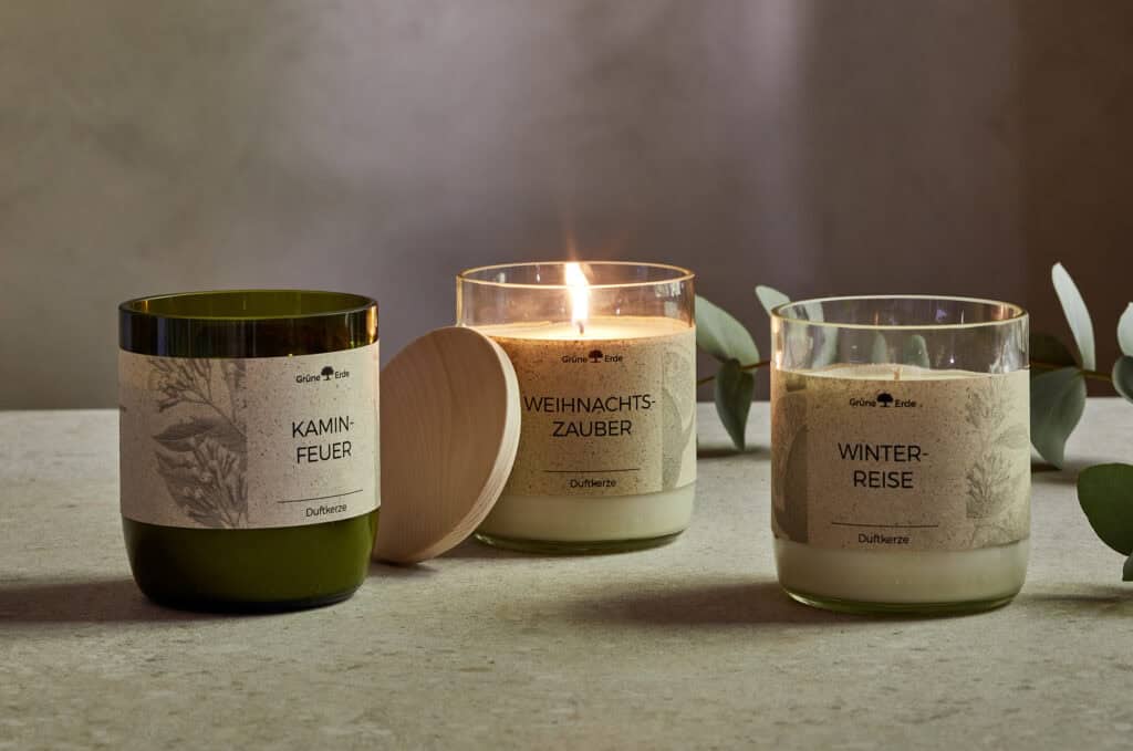 Grüne Erde verwendet für diese Duftkerzen ausschließlich natürliche, pflanzliche Rohstoffe. Hochwertige ätherische Öle aus kontrolliertem biologischem Anbau verströmen einen angehmenen, zurückhaltenden Duft, der an „Weihnachtsmorgen, Kaminfeuer oder eine Winterreise“ erinnert. Die Kerzen sind auch ein schönes Mitbringsel für Gastgeberinnen und Gastgeber.