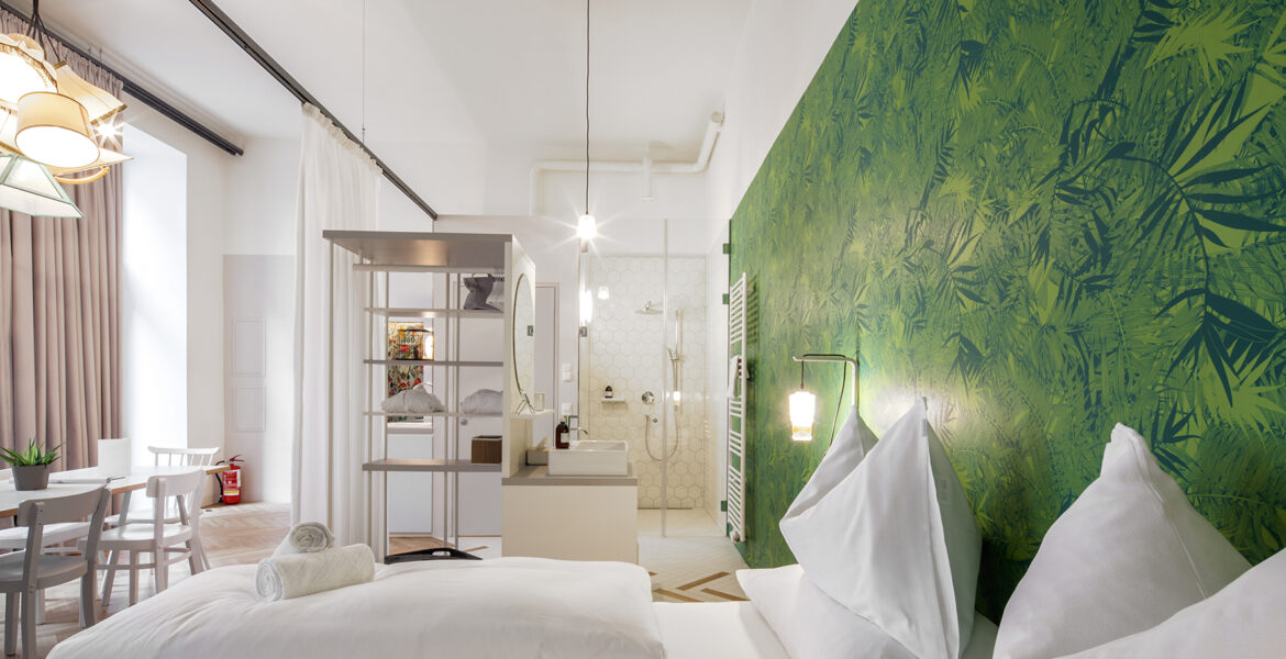 Um die Wirtschaftlichkeit des Betriebs dezentralisierter Hotelzimmer in diesen ehemals leerstehenden Räumen zu ermöglichen, haben wir dann Cluster aus einzelnen Suiten in bestimmten Nachbarschaften gebildet, die jedoch, anders als in traditionellen bzw. typischen Hotels keine geteilten Flächen aufweisen, weswegen wir für Angebote wie Frühstück und Spa auf eine Synergie mit den jeweiligen Nachbarschaften gesetzt haben. So haben wir die Lobby in die Nachbarschaft bzw. in den öffentlichen Raum ausgelagert. Dadurch entstand organisch eine neue Form des Gästeerlebnisses, da unsere Gäste, anders als bei üblichen Hotelaufenthalten, schon beim ersten Schritt aus ihrem Zimmer hinaus mitten in der Stadt und im urbanen Leben stehen. Statt im Frühstücksraum mit Hotelgästen sitzen unsere Gäste neben Einheimischen im lokalen Café, kaufen neben Einheimischen beim lokalen Markt ein und nutzen generell die Angebote, die von und für Einheimische sind. So existiert unser Hotel in einer wundervollen Synergie mit der jeweiligen Nachbarschaft eines Standorts und ermöglicht unseren Gästen, das Leben in diesen unmittelbar zu erfahren bzw. zu erkunden. Sie können bei uns, wie wir gerne sagen, „BewohnerInnen auf Zeit“ werden. Ich denke, dass es genau diese Synergie bzw. die Nähe zum echten urbanen Leben ist, die unsere Gäste lieben, wobei unsere großzügigen, einzigartigen und mit Liebe fürs Detail gestalteten Suiten auch sehr gut ankommen. Unsere Räume sind Wohlfühloasen und Portale zum Stadtleben zugleich; Orte, wo man entspannen kann und Orte, von denen ausgehend man problemlos die Stadt erkunden kann; – eine Stadt, die zumindest in der unmittelbaren Umgebung nicht künstlich für das touristische Erlebnis adaptiert wurde. Unsere Stadt ist unsere Lobby und wir sind ebenso Teil von ihr, wie sie Teil von uns ist. Das macht uns einzigartig und begeistert viele Menschen; Gäste wie Einheimische.